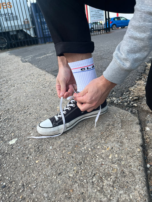 PREMIUM CREW SOCKS - SPLIT STRIPE WHITE