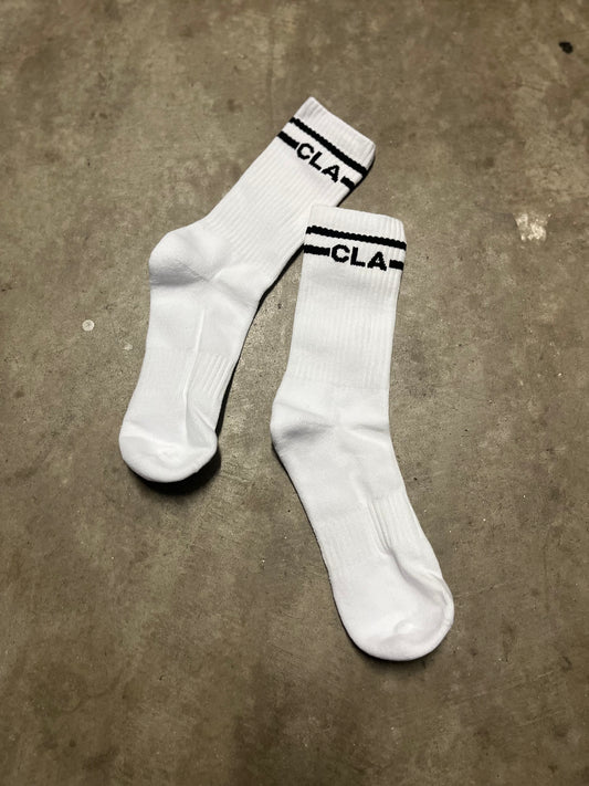 PREMIUM CREW SOCKS - LINKED LOGO WHITE